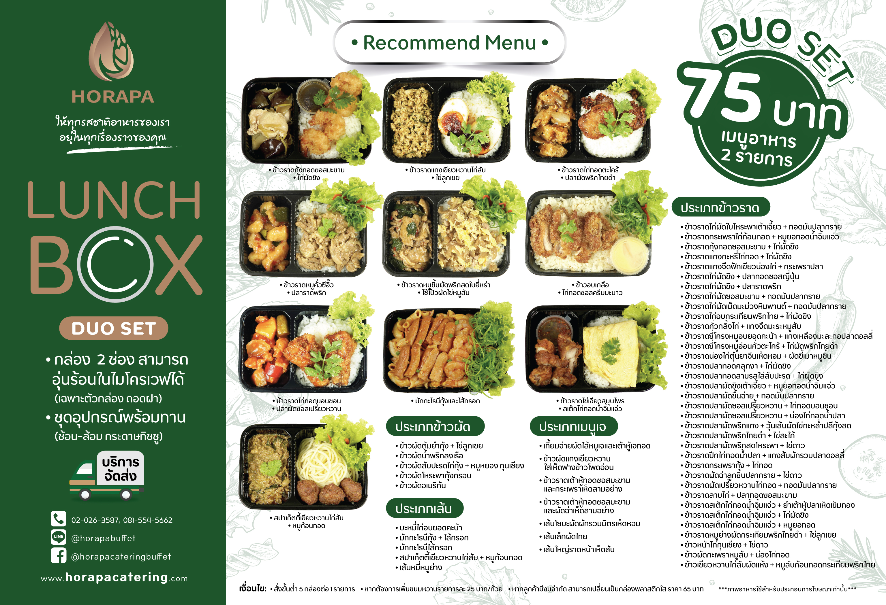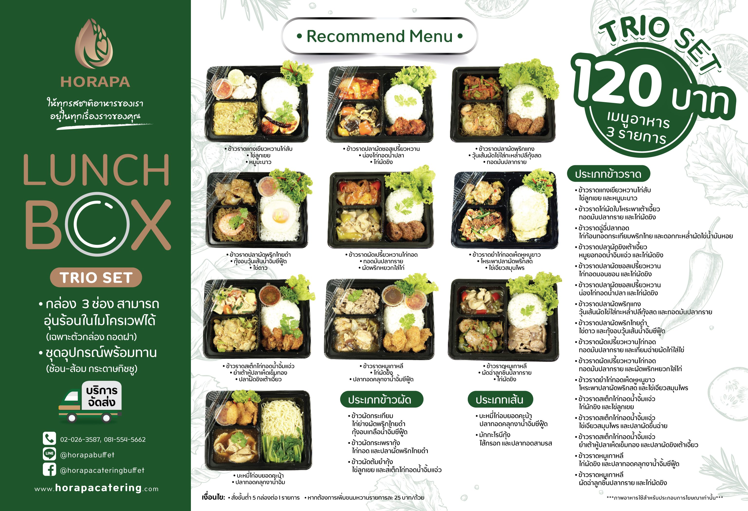 เนื่องจากชีวิตการทำงานในยุคปัจจุบันที่ต้องเร่งรีบอยู่เสมอๆ ทางร้านจึงได้จัดทำข้าวกล่อง Delivery ส่งถึงที่ เพื่อตอบสนองความต้องการของลูกค้าที่ต้องการความสะดวกสบายและประหยัดเวลา ท้งนี้ทางร้านมีบริการส่ง ข้าวกล่อง เครื่องดื่ม ขนมหวานและผลไม้ ในราคาถูกสุดคุ้ม บรรจุในกล่องที่สะอาด รับประทานง่าย และสะดวกต่อผู้ทาน ซึ่งเหมาะกับวาระโอกาสต่างๆ เช่น งานทำบุญ งานสวดพระอภิธรรม งานประชุม งาน event และงานกีฬาต่างๆ ฯลฯ ทางร้านได้มีประสบการณ์ในการจัดทำข้าวกล่องในปริมาณมากมาอย่างยาวนาน ลูกค้าจึงมั่นใจได้ว่าจะได้รับสินค้าตรงตามเวลา ถูกต้องครบถ้วนและอร่อยแน่นอนค่ะ